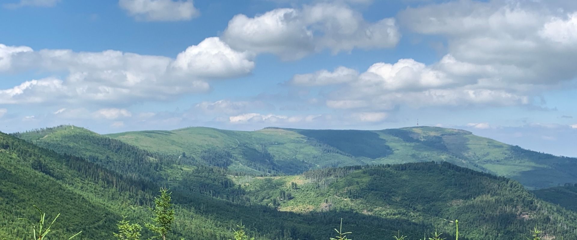 Drogą dochodzimy do żółtego szlaku. Skręcamy w lewo i wspinamy się na Baranią Górę. Po drodze Magurka Wiślańska (przy okazji, wiecie ile gór w Polsce nosi nazwę Magura lub Magurka? Warto poszperać!). Po osiągnięciu pasma grzbietowego, szlak jest bardzo widokowy. Po lewej mamy Beskid Żywiecki oraz Mały. W upalny dzień - tak jak w czasie naszej wędrówki - oznacza to marsz w pełnym słońcu.